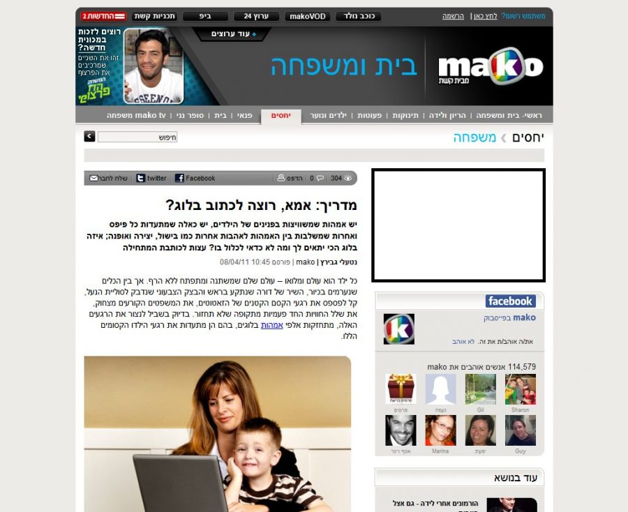 כתבה שפורסמה באתר MAKO על נושא האמהות הבלוגריות, ראיון איתי ועם עוד בלוגריות נוספות.