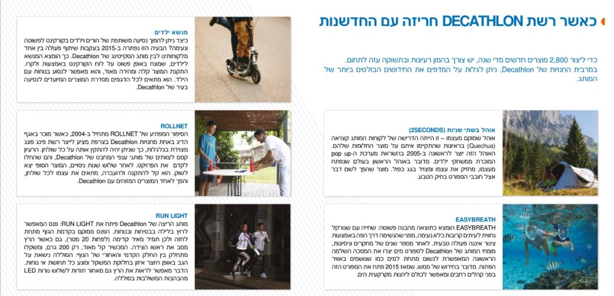 דוגמאות למוצרים בפיתוח של דקטלון DECATHLON
