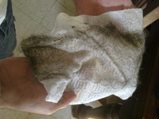 יש לאמא שלי בבית 3 כלבים כרגע. לברדור גדול של אחי ועוד 2 יורקשיירים קטנים ויחד יש שם חגיגה של שיערות. החלטתי שזוהי סביבה אכזרית וקשה בשביל לנסות את הSwiffer כמו שצריך, אמא שלי עשתה פרצוף סקפטי ואמרה לי שזה נורא כמות השיערות. עברתי עם הSwiffer בסלון ובמטבח ותוך דקות אחדות כמעט ללא מאמץ, ריכזתי את כל השיערות שהיו מפוזרות בבית על גבי המטלית של הSwiffer .